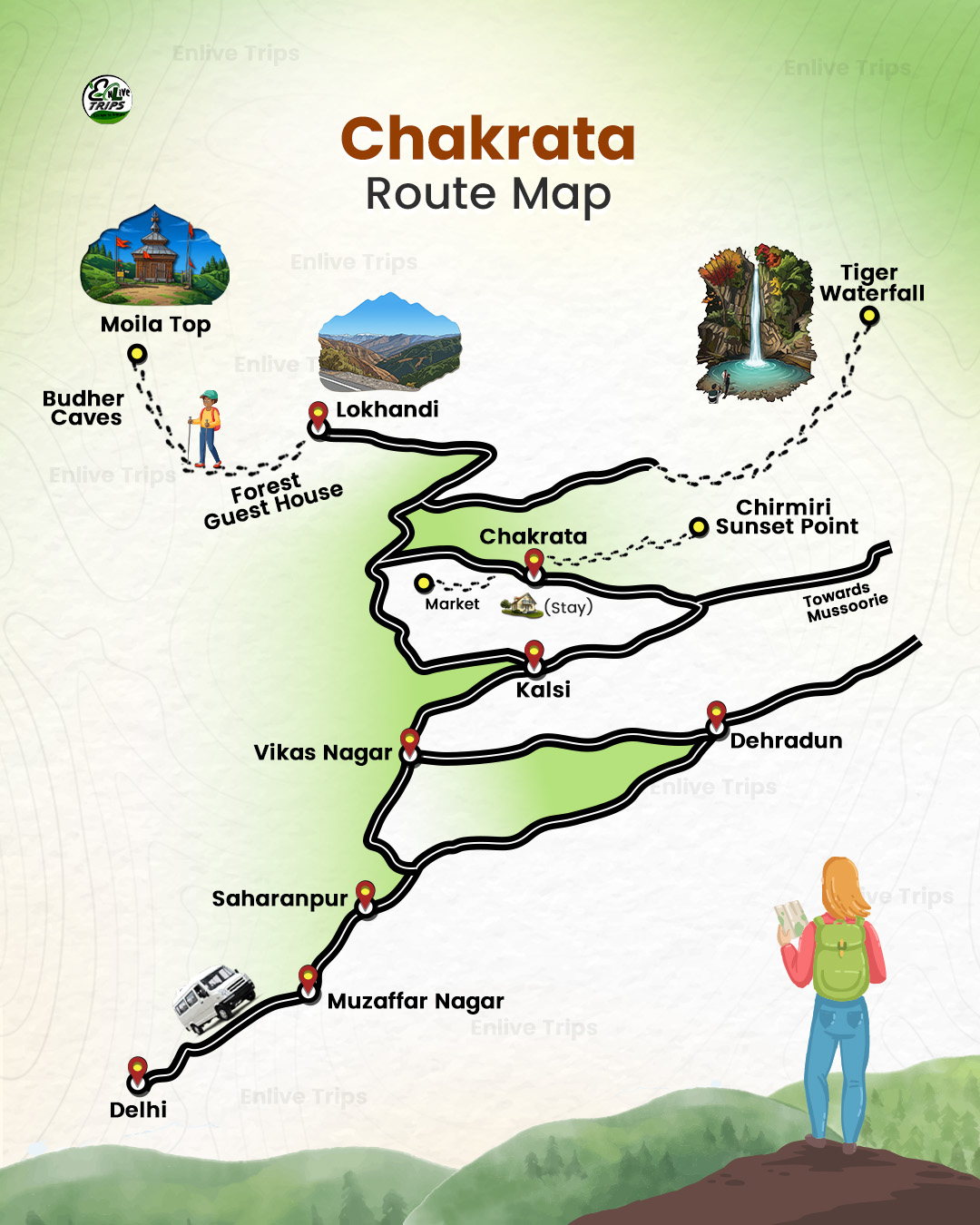 Chakrata trek lies between the beautiful famous site Mussories and Kaleidoscope Kinnur in the east and west respectively. It is one of the recommended destinations for commercial, couples, family & kids, foreigners, groups and solo to enjoy and relax themselves. We offer a satisfactory weekend package for you to visit Uttarakhand as a tourist and indulge with numerous things. Enlivetrips care about you and your respectable journey with remarkable impacts Weekend Trips from Delhi.