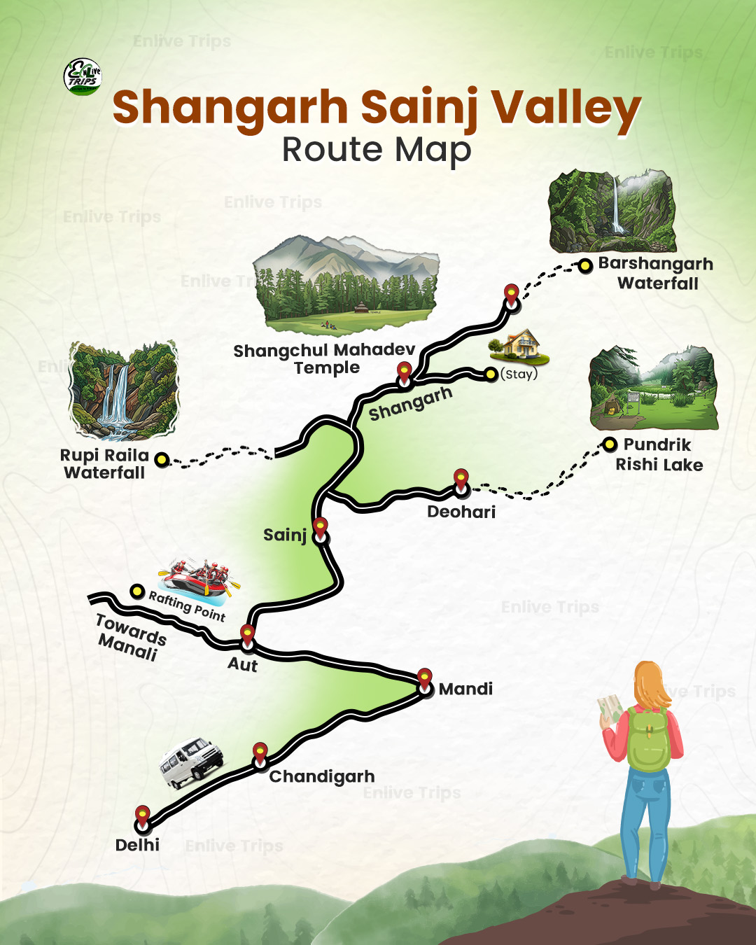 A little farther away is Shangarh, a pleasurable environment for a lull vacation and absolute togetherness with nature. With a comfortable forest vacation house situated in this part of Sainj Valley, the magnificent view of the surrounding peaks can be taken after wayfaring 4 kilometres into an earthly miracle in the dense green pine forest. Despite the remoteness of this hidden land, it is embraced by travel-loving explorers and hikers. The place of Shangarh is also known as the Mini Gulmarg, which is a base point for trekking.